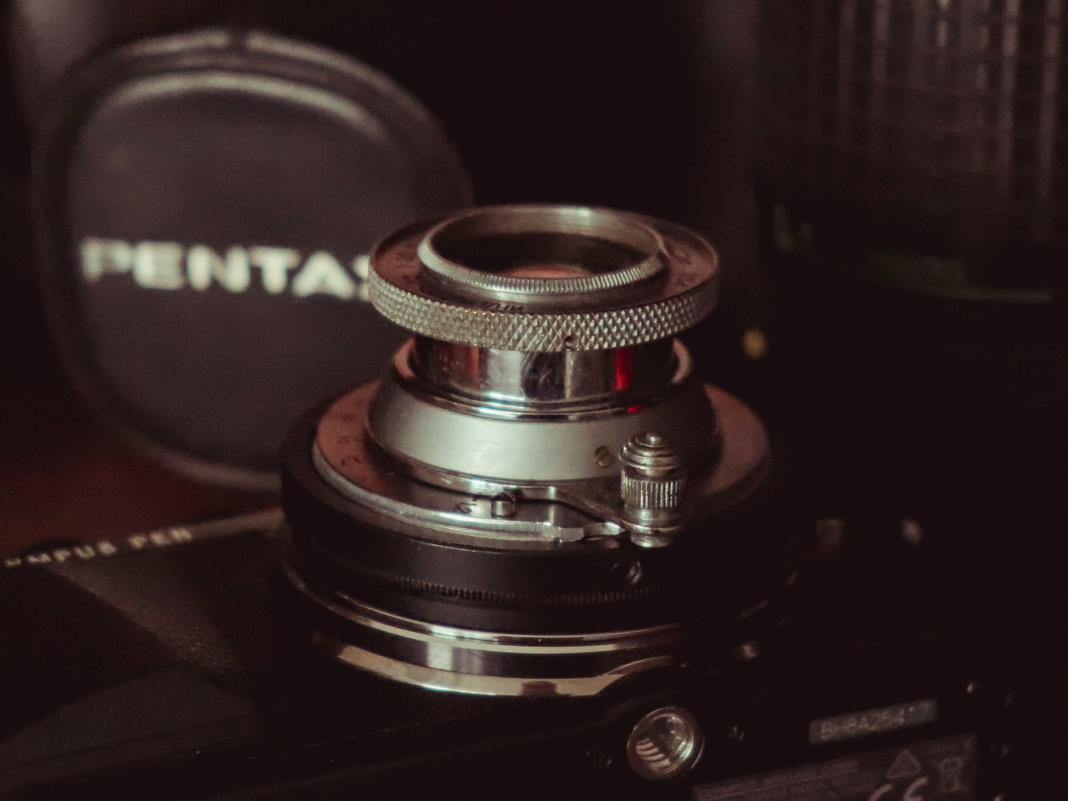 누군가가 최소 초점 거리를 5cm라고 적어놨는데, 실제 사용해보면 5cm가 아니라 1미터라는 것을 알 수 있다. 그러므로 처음 인더스타 22를 사용한다면 가까운 거리에서 초점이 맞지 않는다고 해서 당황할 필요는 없다. 원래 1미터가 최소 초점거리다. 그러나 러시아 포토그래퍼가 쓴 리뷰를 통해서 어떤 나사를 바꾸면 초점거리가 5cm가 된다는 것을 알 수 있다. 밑도 끝도 없이 5cm는 아니지만 어쨌든 분해해서 간단한 조절만 한다면 5cm가 된다.